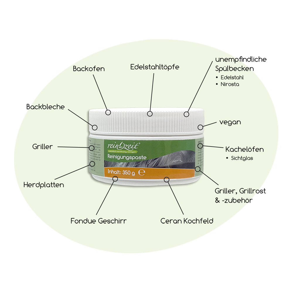 Particularly stubborn edges on the toilet can be easily removed with the paste and the loofah sponge. Attention! Do not use on coating!
