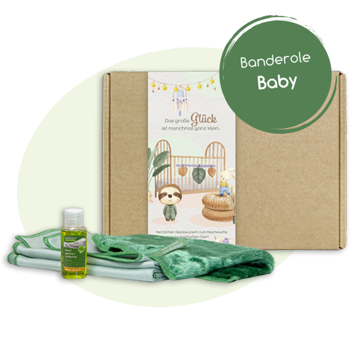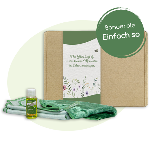 Je 1 Stk.: Handgeschirrspülmittel Probe 30 ml, Geschirrtuch salbei, Abwaschtuch grün