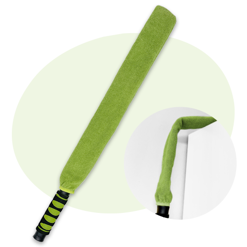 Durch einfaches Biegen an jeder beliebigen Stelle, kann das flexible Staubschwert alle engen und schmalen Zwischenräume mühelos erreichen. Vor allem bei Kanten, Rahmen, Leisten und abhängenden Lampen ist es von großem Vorteil. Der Mikrofaser-Überzug des Staubschwertes kann trocken sowie feucht zum Einsatz kommen. Mit der Erweiterung des Gelenkstückes und der Teleskopstange werden sogar sehr hohe Kästen erreicht.