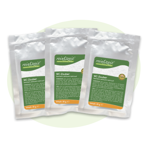 Das Pulver reinigt, schäumt nicht auf und bringt natürliche Sauberkeit für die Toilette. Es hinterlässt auf der WC-Oberfläche einen dünnen Film, der neue Schmutzanhaftungen erschwert. Je nach Bedarf den ganzen Beutelinhalt im WC-Becken verstreuen. Mit der nassen WC-Bürste gut im ganzen Becken, bis unter den WC-Rand, verteilen. 1 bis 2 Stunden oder länger einwirken lassen.